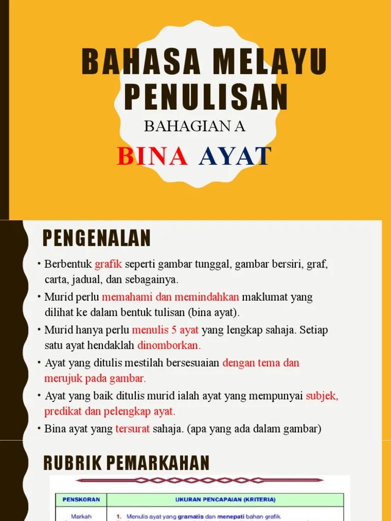 Pilih ayat yang paling sesuai dengan gambar. Tahun 5 | bahasa melayu upsr | penulisan: Interactive worksheet bina lima ayat lengkap berdasarkan gambar. Tahun 5 | bahasa melayu upsr | penulisan: Soalan bina ayat bahasa melayu tahun 5 selangor e. Dengan keperluan silibus pelajar tahun 1 hingga tingkatan 5.